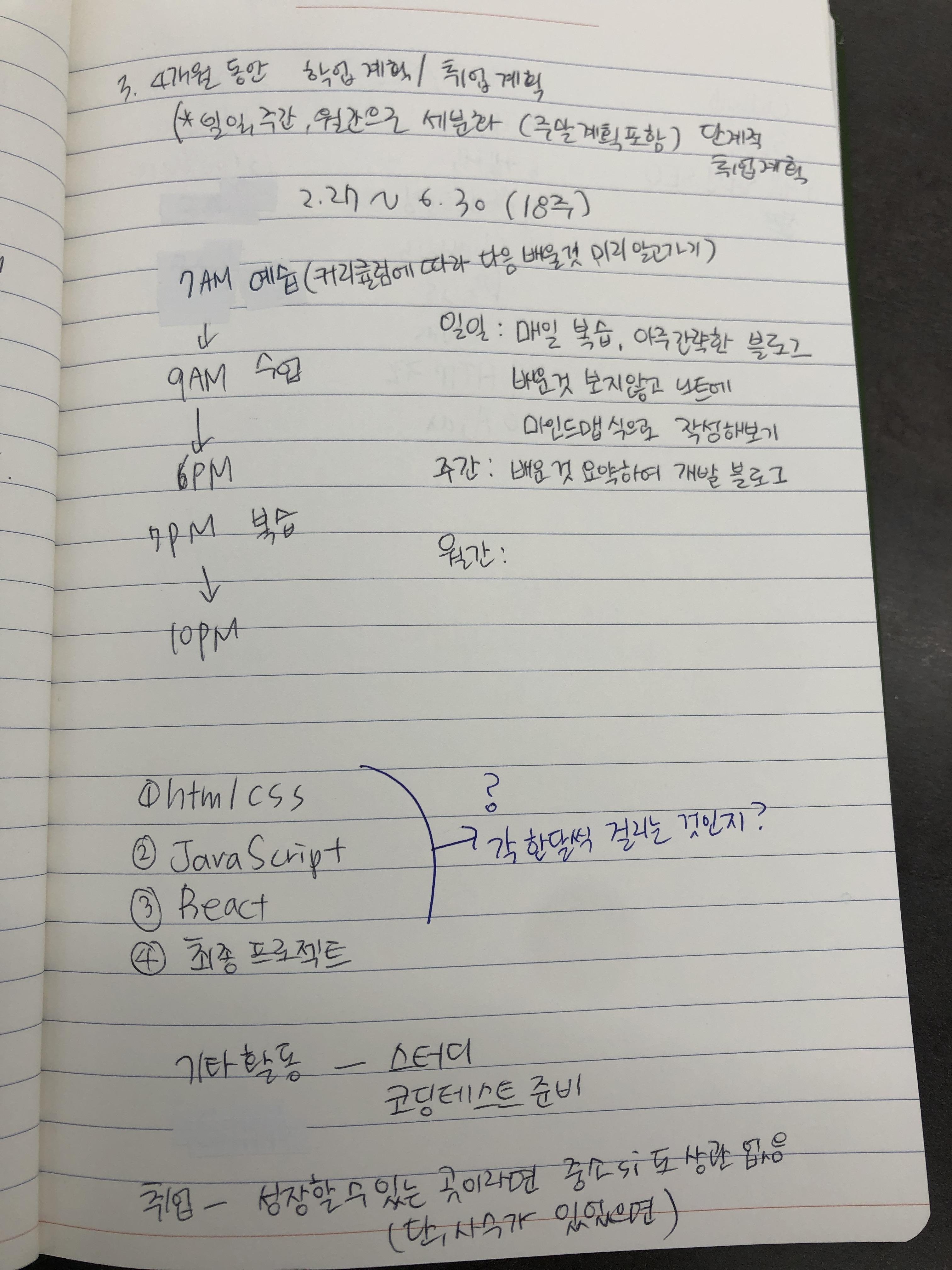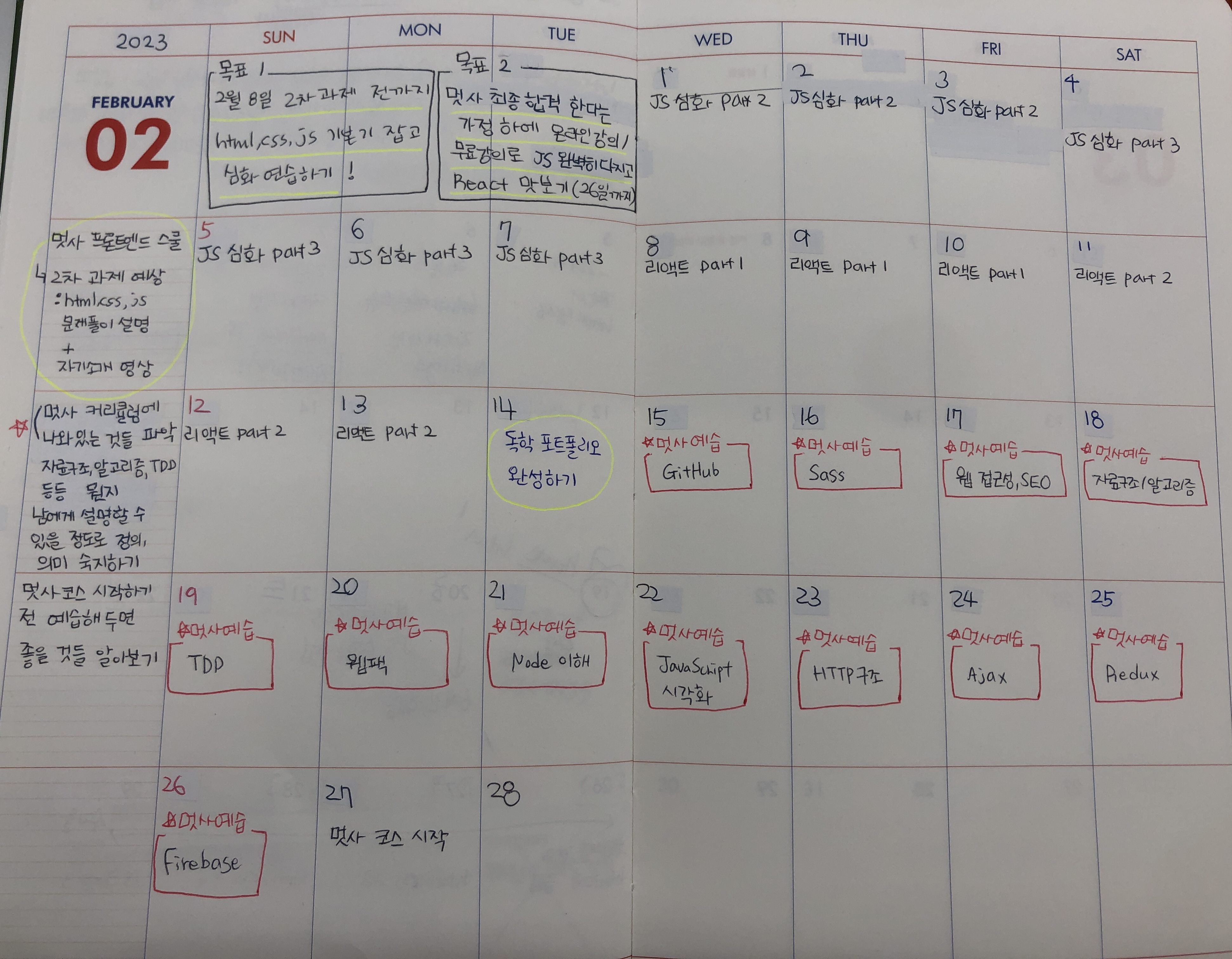 나는 무조건 최종 합격한다는 목표로 개강 전 2월 한 달 간의 간단한 목표도 세워봤다