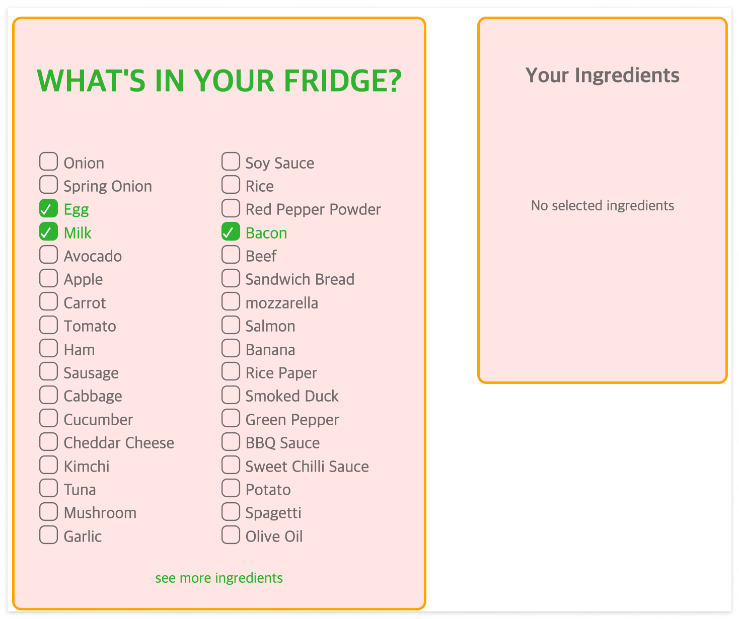 이번에 구현해 볼 기능은 왼쪽 박스에서 재료를 고르면 오른쪽 박스에 담기게 하는 것이다