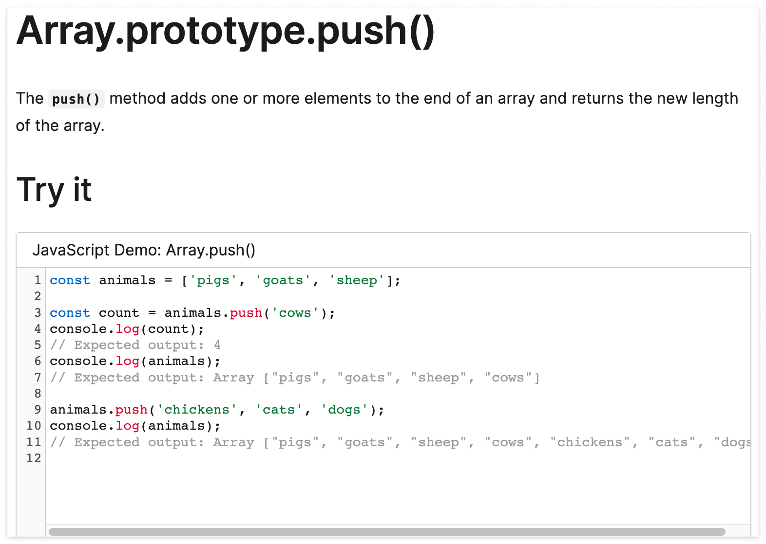 push가 array에 새로운 element 를 추가하는 것은 알고 있었지만 이렇게도 사용할 수 있구나