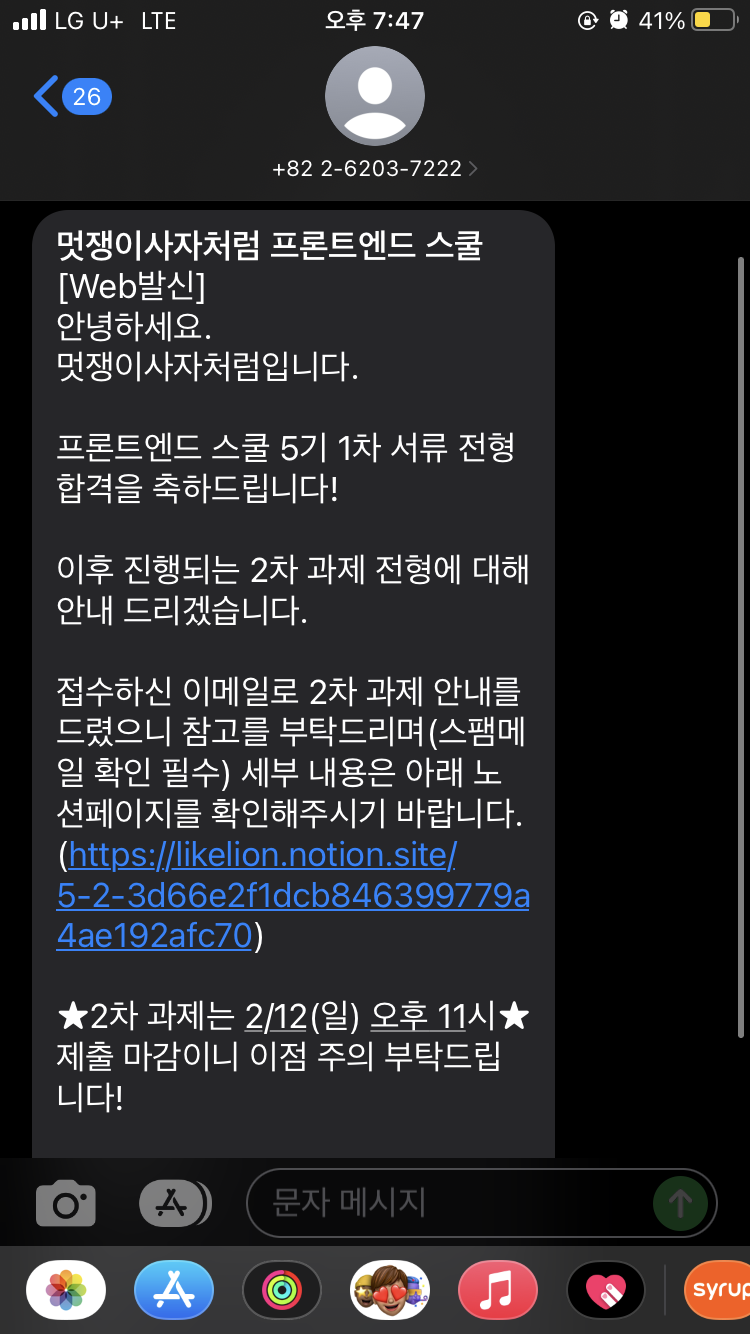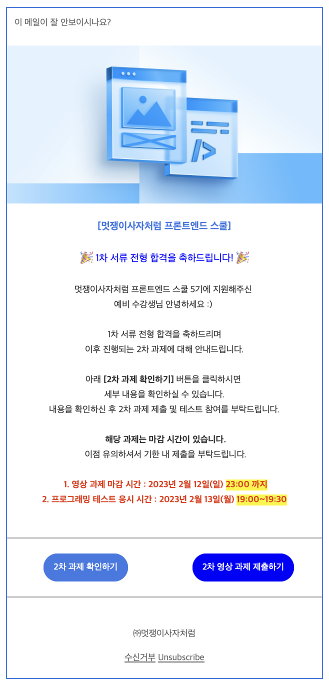 오늘 오후 3시에 드디어 멋사 국비지원 프론트엔드 스쿨 5기 1차 합격 발표가 났다
