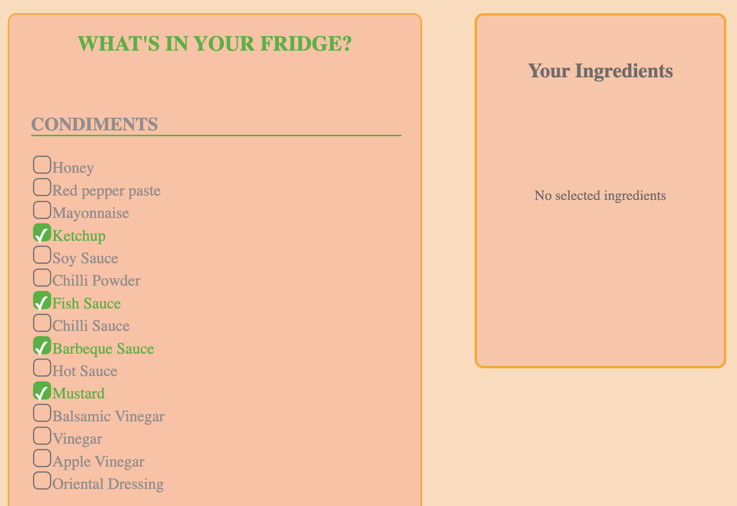 이렇게 재료를 선택하면 오른쪽 박스에 체크한 순서대로 리스트가 생성되어야 하는데