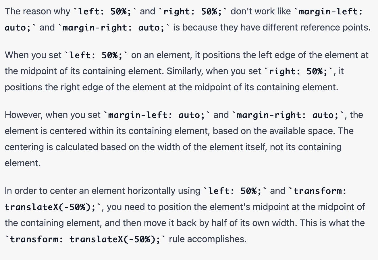 right: 50% 대신 transform: translateX(-50%); 을 사용하는 이유에 대해서 알아보았다