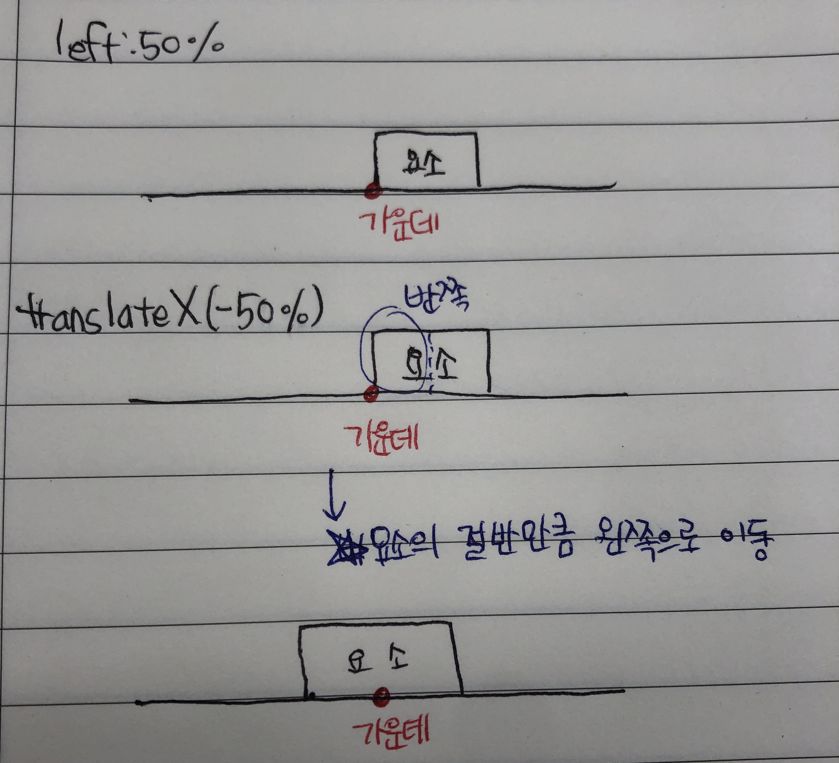 transform: translateX(-50%)를 주면 가운데 정렬이 된다