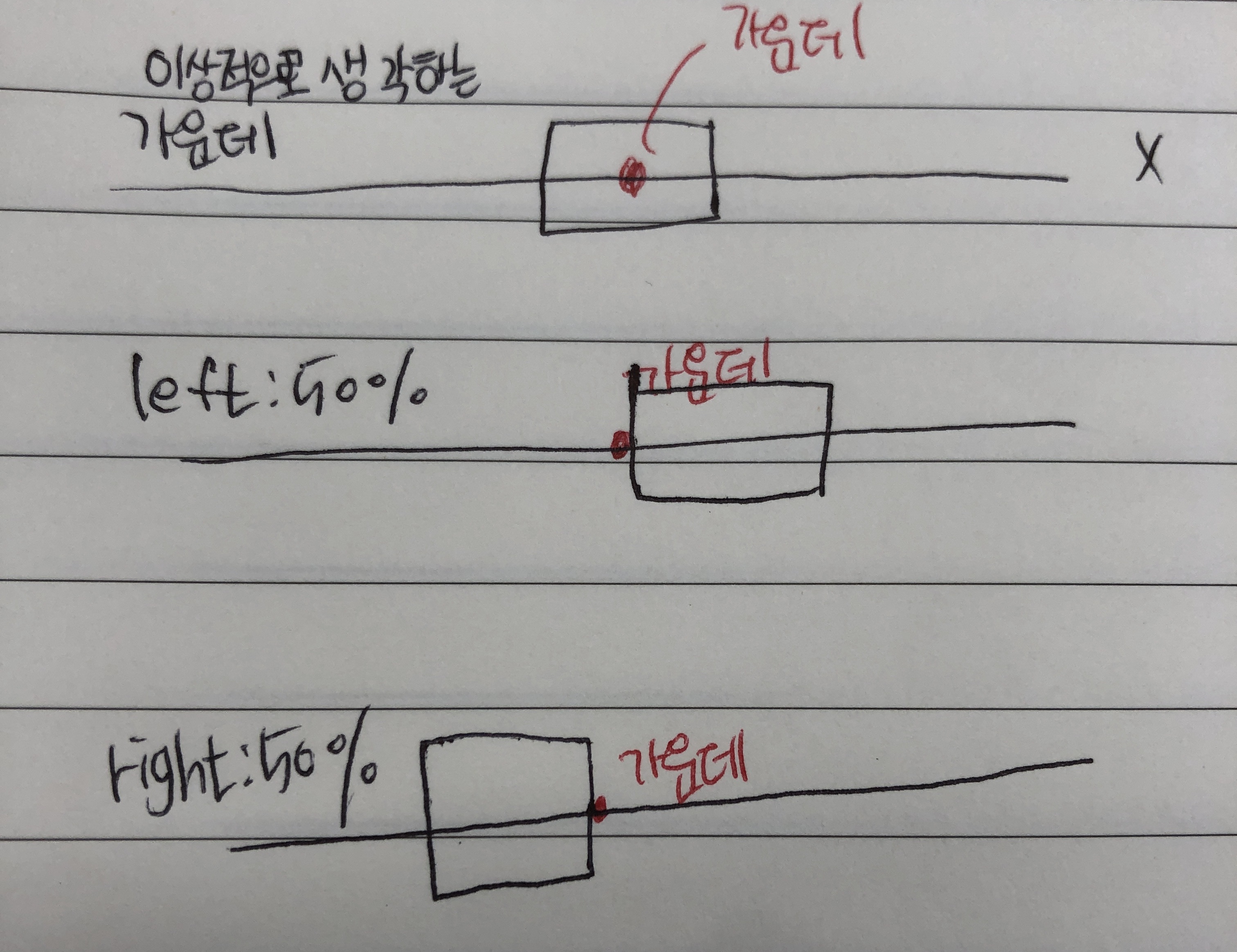 왜 left: 50%; right: 50%;을 주면 가운데 정렬이 되지 않는 걸까