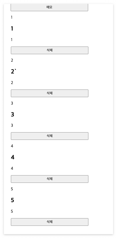 anyway, 내가 이해 안 가던 부분을 해결하기 위해 대충 5개의 메모를 저장했고 랜덤으로 삭제해봤는데 처음엔 event.srcElement.id 의 index 기준이 잘 이해가 가지 않았다