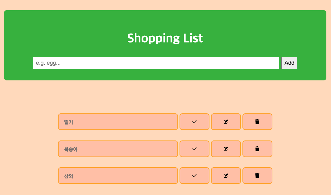 Vanilla JavaScript로 todolist와 같은 로직의 shopping list 를 구현해보았다.