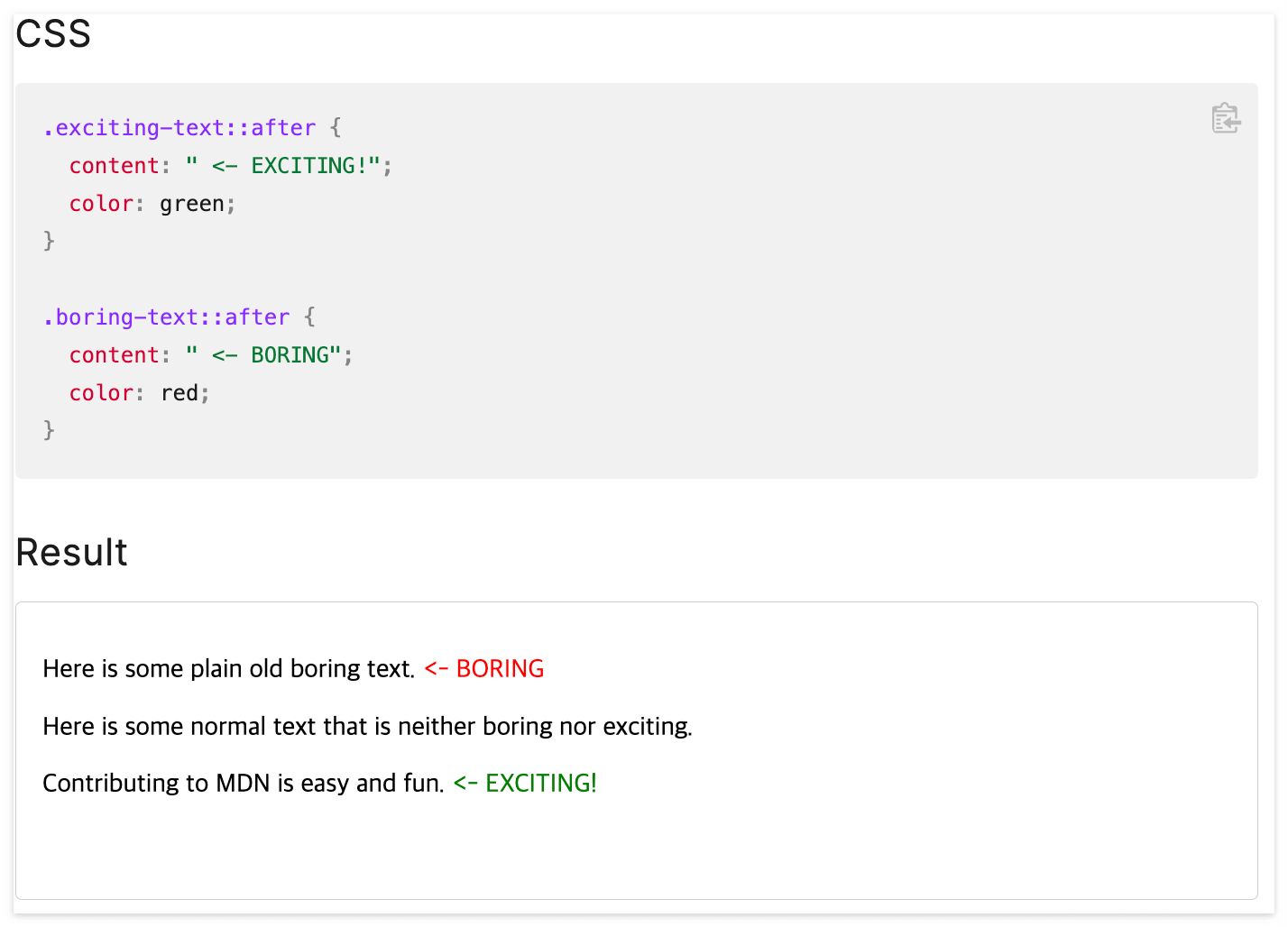 많은 의견들을 보다 보니까 selector 뒤에 :before :after 등을 사용하는 것이 많은데 이것이 무엇을 의미하는지 언제 쓰이는지 잘 모르겠다
