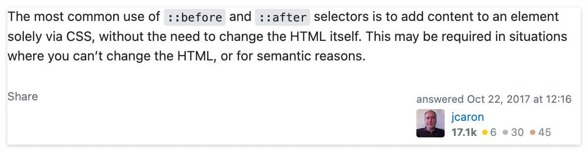 <span> 요소(Element) 를 사용해도 될 것 같은데 왜 :after :before를 사용하는지 의문이 든다